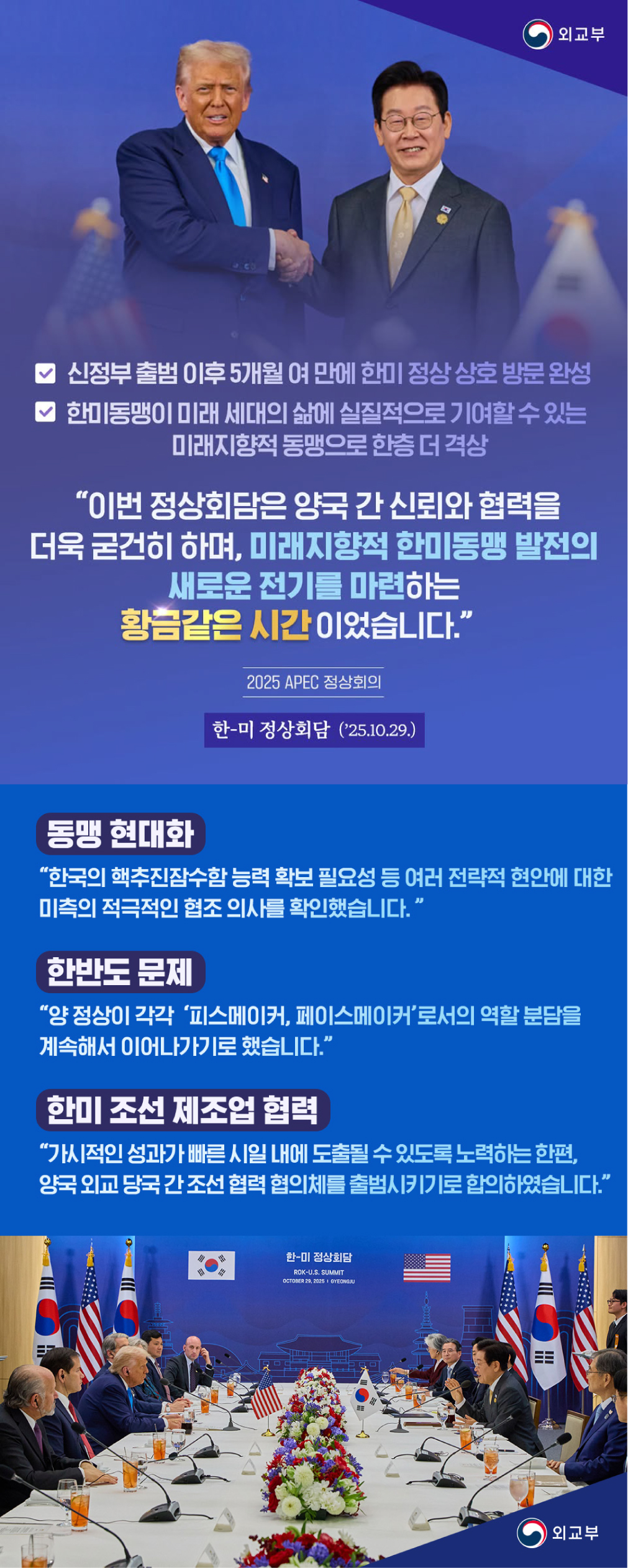 120-1 외교부-25-011 APEC 정상회의의 성공적 개최 - 2025년 APEC 의장국으로서 미·중·일·러를 포함한 21개 회원을 견인, 성공적 정상회의 개최(10.31-11.1)